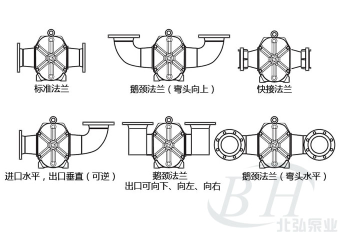 LC保溫羅茨油泵的法蘭連接也非常多樣化,完全不受管道走向影響。以下提供常用的法蘭連接形式: